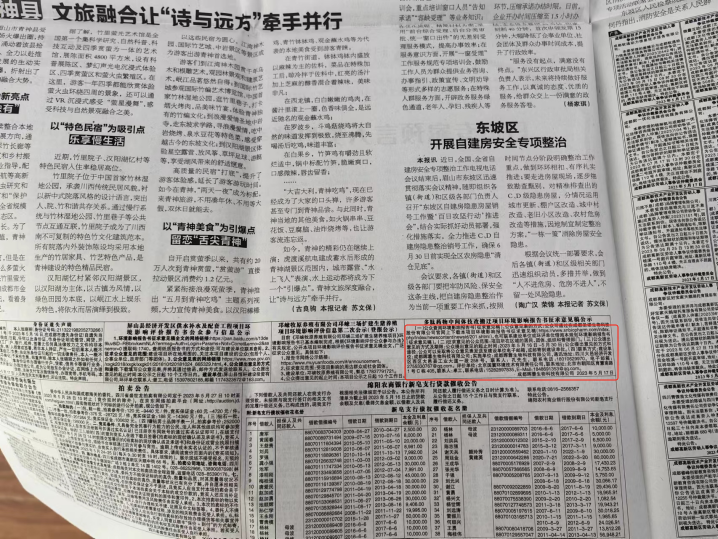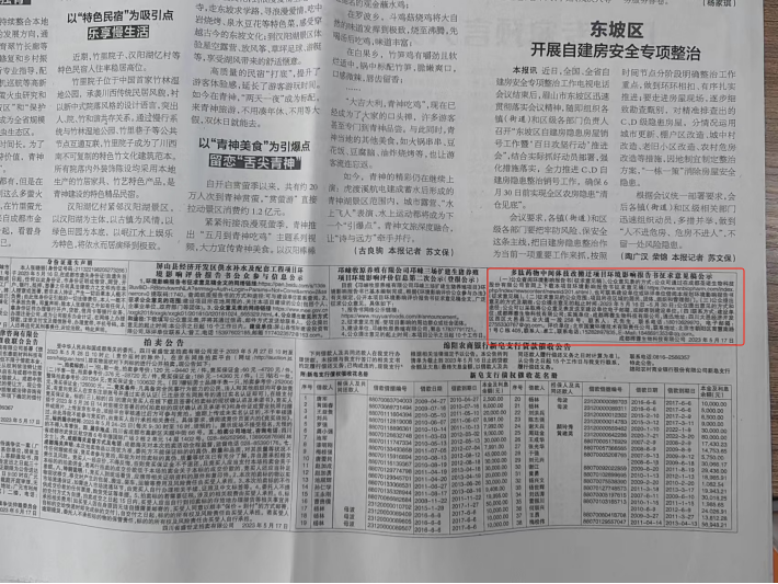 成都暉蓉生物科技有限公司于2023年5月17日在四川科技報共計進(jìn)行了2次公示,四川科技報為四川省省級報刊,屬于項目所在地公眾易于接觸的報紙。公示登報情況如下圖所示: