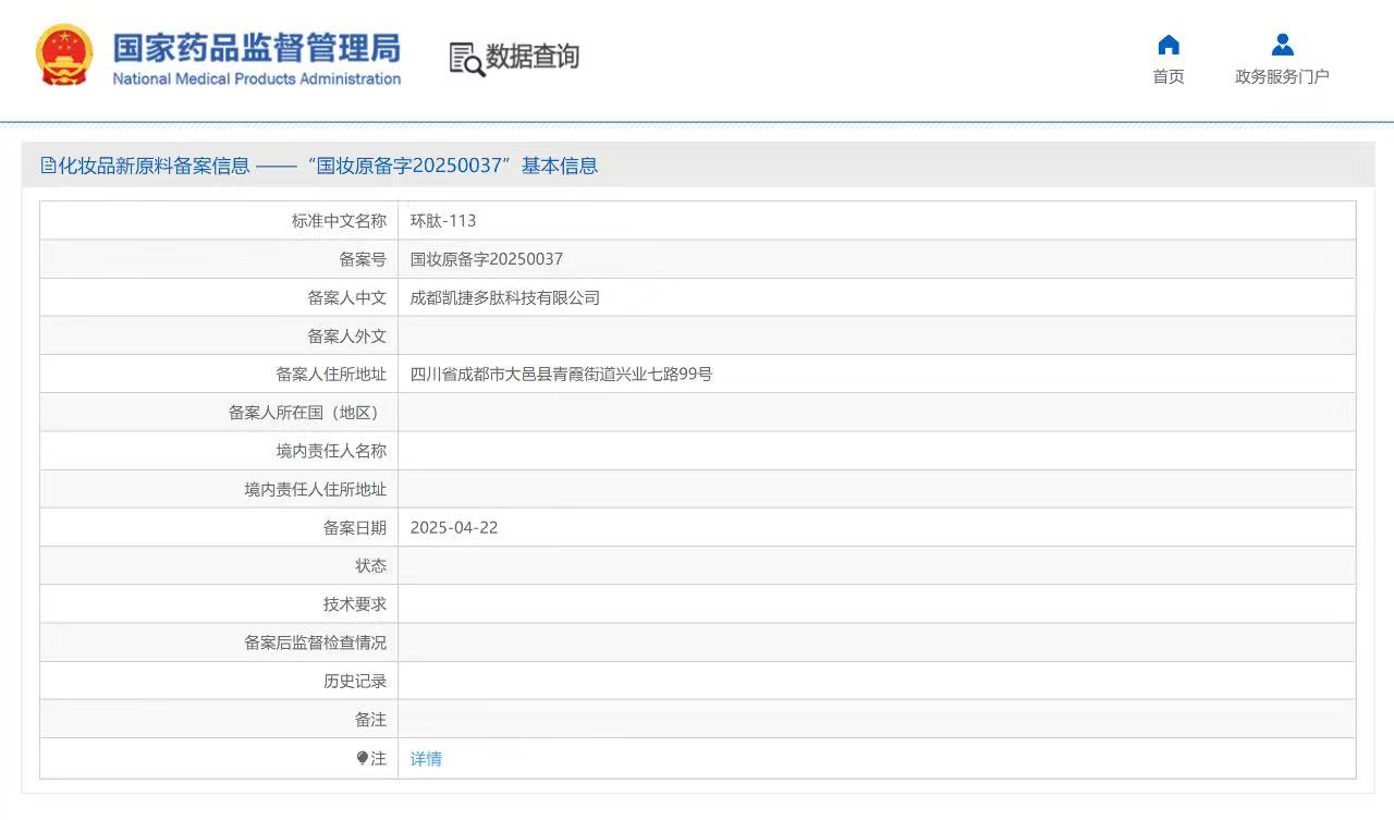 4月,環(huán)肽-113(國妝原備字20250037)