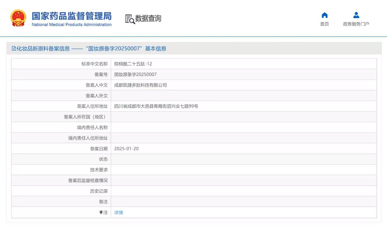 1月,棕櫚酰二十五肽-12(國妝原備字20250007)