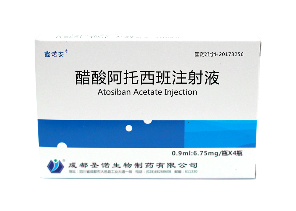 The drug, xinoan@atosiban acetate injection, is produced by chengdu shengnuo biological pharmaceutical co., ltd. to delay the onset of premature labor.